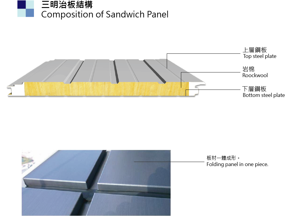 Four tongue-and-groove sandwich panel (1-Hour Fireproof + Green Building Material System)